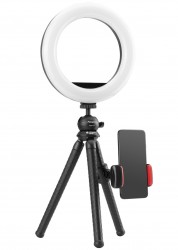 A tripod equipped with a ball head and additional mounting accessories has many applications. It can serve as a perfect support for cameras, sports cameras and smartphones. Thanks to the ring lamp, your face will always be well lit and simple recordings will gain a professional look.