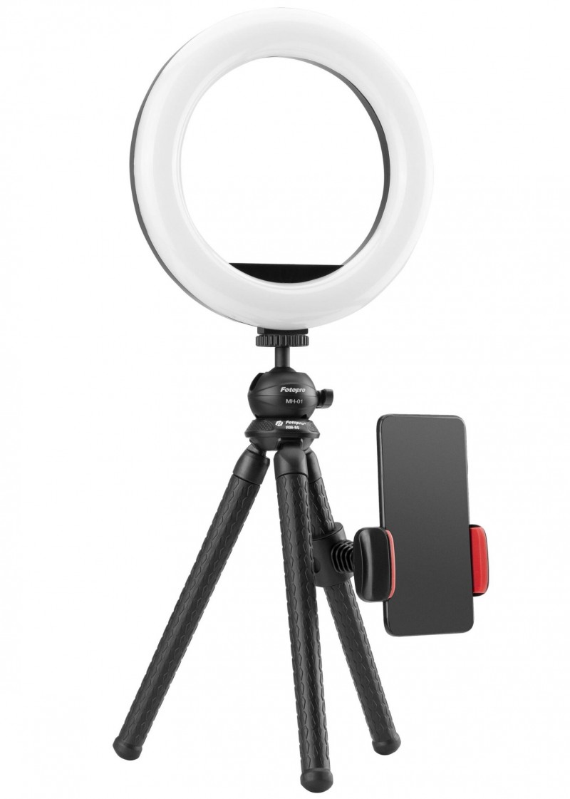 Fotopro L3 lighting kit is a comprehensive solution, ideal for any vlogger – youtuber. It includes Fotopro AK-08 ring light, Fotopro RM-80 flexible tripod, Fotopro MH-01 small ball head and Fotopro SJ-20 smartphone holder.