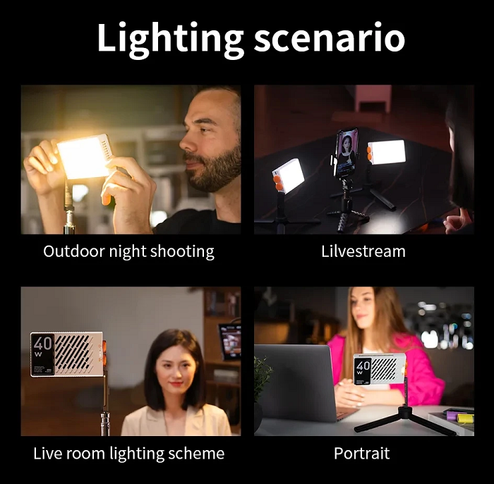 • Adjustable dual color temperature ranging from 2,700-6,200K and consistent power output peaks at 40W with no strobing, ensuring a stable light source