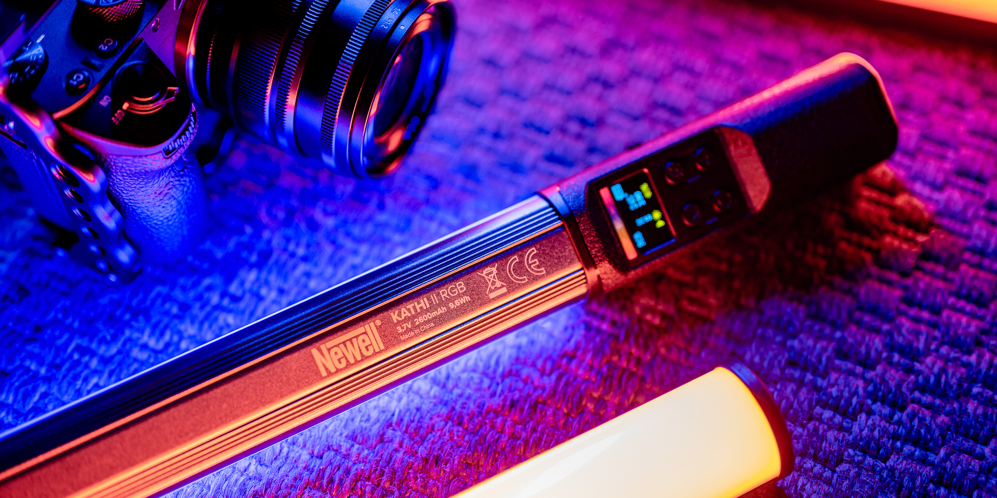 Kathi II is another version of Newell’s lightsaber that will find dozens of applications in the world of film and photography. The lamp offers a very wide range of color temperature (2500-9000 K) and color (HSI) adjustments, giving creators full control over the hue, saturation and intensity of the light. The 2600 mAh battery provides up to 70 minutes of operation at maximum brightness. The Newell RGB Kathi II offers up to 20 preset special effects. Ergonomic buttons and a backlit screen make it easy to control the parameters, and the USB-C port allows convenient charging with a power bank. You can easily install the lamp on a tripod with 1/4″ thread. The device also allows you to work comfortably “handheld”. The kit does not lack a wrist strap and USB-C cable.