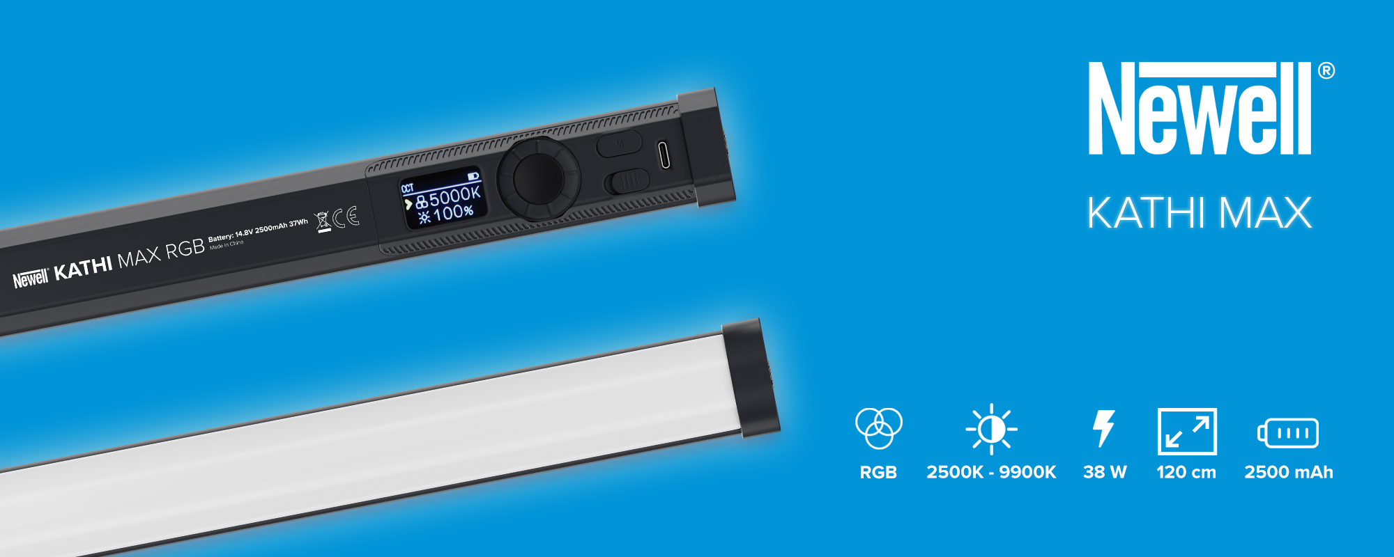 Kathi Max is the longest LED lamp in Newell’s family of innovative lightsabers. With a length of as much as 120 cm, the device is perfect for working on your photos or videos. The lamp offers a wide range of color temperature adjustment (2500 – 9900 K). With the ability to change the color of the light within the HSI color space, you will get full control over the shade, saturation and brightness of the light. The lamp is equipped with a 2500 mAh rechargeable battery, which you can conveniently charge using a USB-C cable. Support for Power Delivery technology will allow you to replenish the lightsaber quickly and efficiently. There are also 21 ready-made special effects on board that are sure to bring your video productions to life.