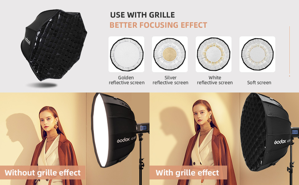 The Godox AD-S60S Multifunctional Softbox 65cm for AD300Pro , AD400Pro , ML-series is an octagonal softbox. The octabox is ideal for movies, portrait photography, wedding photography and more. Thanks to the Godox mount, you can easily use it with the AD300 Pro.