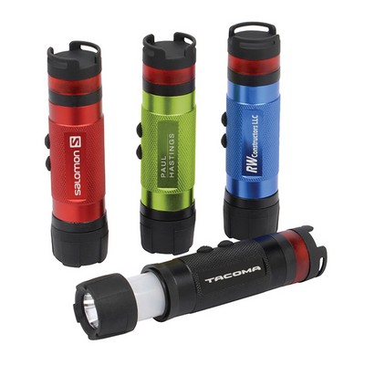 The 3-in-1 LED Mini Flashlight may fit easily into your pocket, but don't be deceived by its size. This fully featured mini flashlight can illuminate the night as a flashlight, lantern, or safety light. The ultra bright, 80 Lumen flashlight has high and low modes both as a flashlight, and when converted into its lantern mode with a simple sliding motion. The tail end of the light features a red safety light with its own switch to set it to glow, flash, or SOS modes. Complies with Prop 65. 4 1/2" L