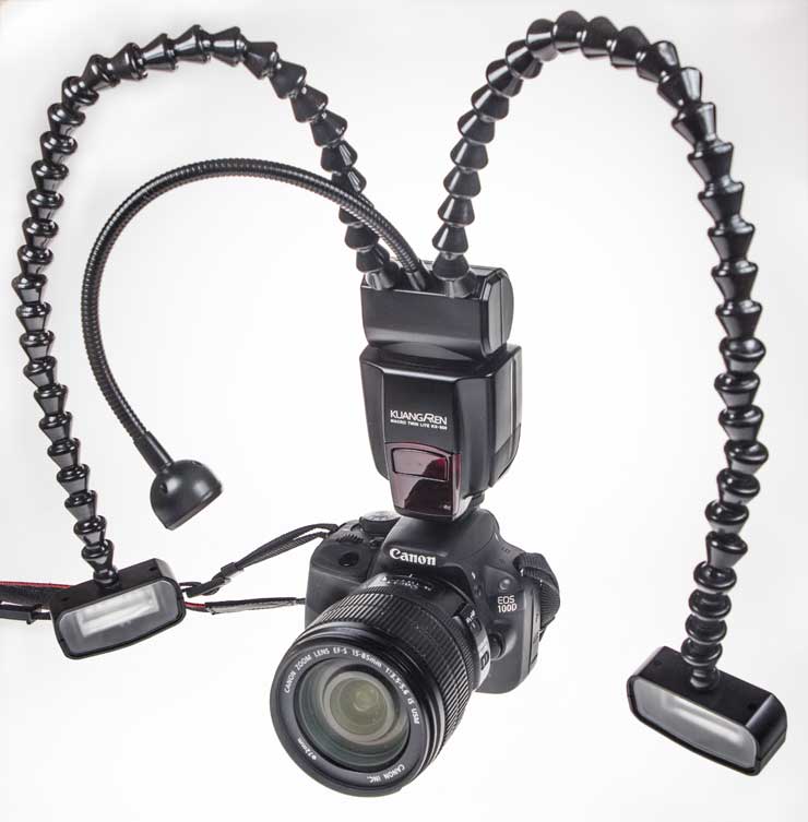 Along with their impressive development of unique macro lenses, Venus Optics has created the versatile KX-800 Flexible Macro Twin Flash to help illuminate your close-up subjects. It has a twin flash design with each head mounted on its own 18.9" long flexible arm. This flash boasts a guide number of 190' at ISO 100 and each head has independent output control for dialing in the perfect ratio for the scene. Also, manual power can be set from 1/1 to 1/128 for 8 levels of adjustment.