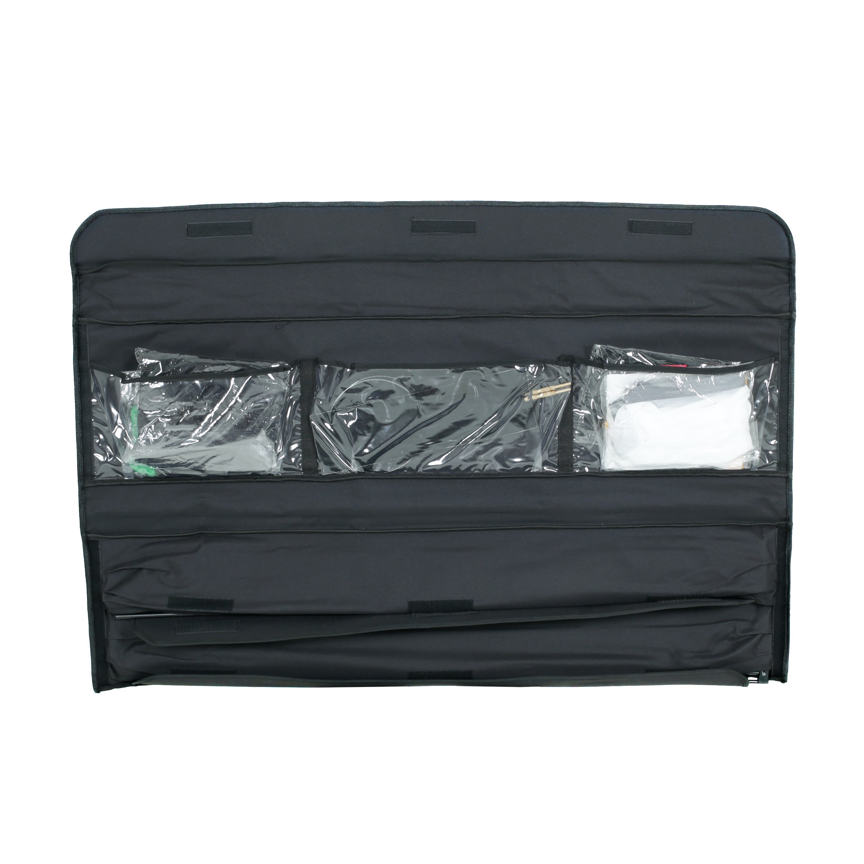 The Caruba CIne Scrim & Fast Flag set is quick to set up and dismantled. It consists of 5 open-end frames with convenient colour coding and accessories. The scrims and flags slide over the lower and upper leg and you can secure it tightly on the vertical bar with the help of Velcro. The frames are industry standard and thus easy to mount to a Gobo or Grip Head.