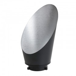 The Godox Background Reflector is an oval lichtvervormer enabling uniform and fan-like background exposure of your subject. Another possibility is to place the light closer to the background for a vignetting effect, or you can highlight the back of the subject to make it to separate from the background. To provide a background of color effects you can attach to the front of the reflector may gels using optional clips.