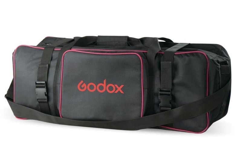 The Godox CB-05 carrying case is made of high quality materials. The bag has a handle for easy transport possible. The CB-05 bag has space for 3 light stands that come with the light kit.