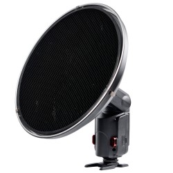 The Godox Witstro Beautydish with grid is designed specifically for use with the AD180 and AD360 Godox Witstro flash. It consists of two elements: a reflector, and a grid. The reflector concentrates the light towards a focal point, so that the light is a combination of a direct flash and a soft box. The light is more focused thanks to the grid and gives high contrast. The beautydish optionally also be used without the grid.