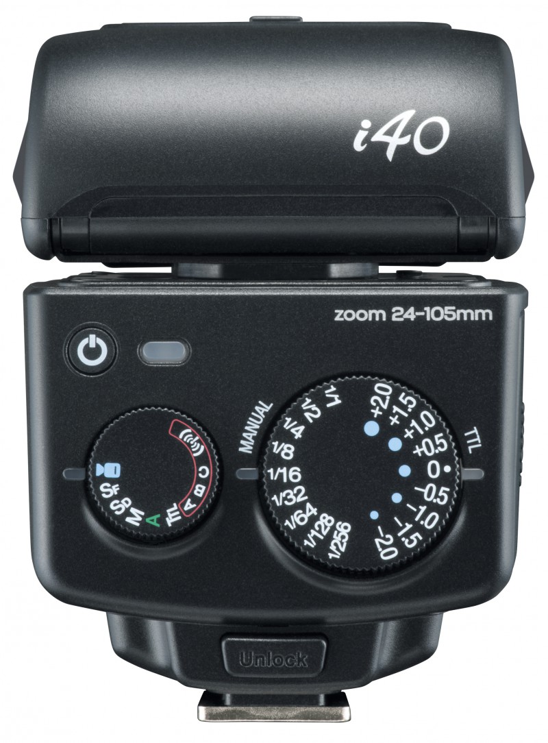 Although the i60A is very compact in size, it can still deliver a high power output of 60GN (at ISO 100, 200mm zoom head position). Also, you can connect your i60A to an external power source to reduce the flash recycle time during constant high power output.