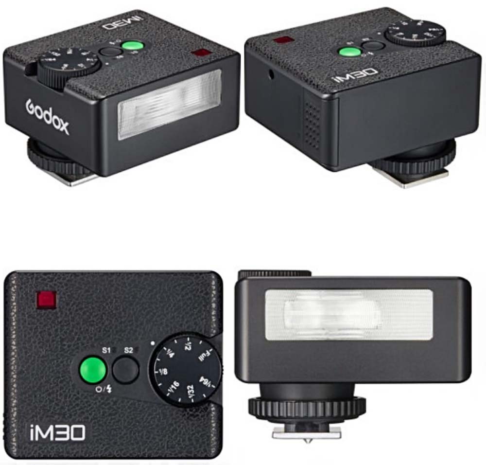 For greater control over the light in your setup, the iM30 features an optical mode that offers S1 and S2 settings. In S1, the flash triggers when it sees any burst of light from a main flash. In S2, the flash ignores a single pre-flash and fires on the second burst of light.
