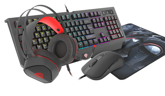 GENESIS COMBO set 4in1 cobalt 330 rgb keyboard + mouse +headphones + mousepad, us layout