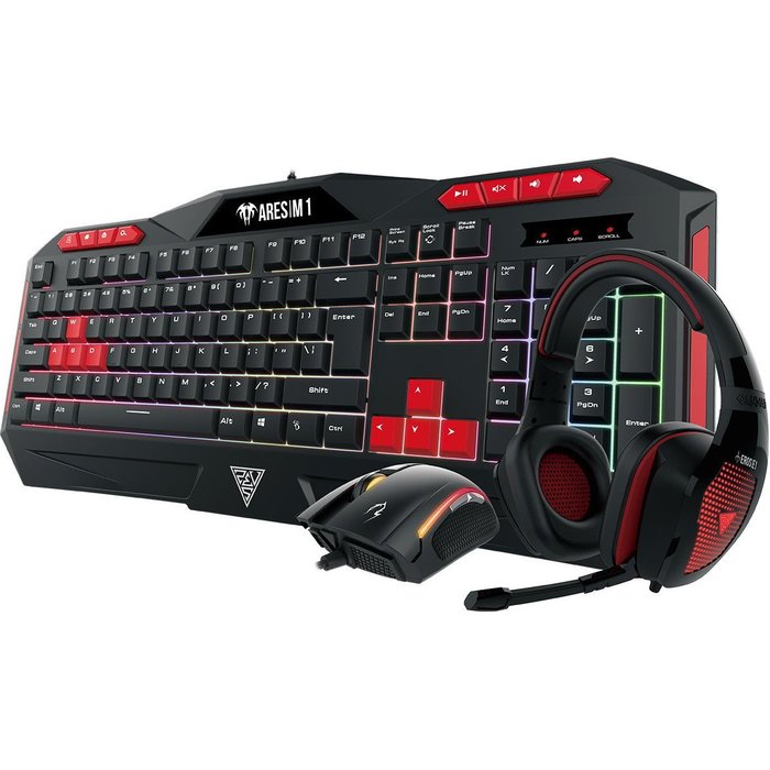 Gamdias»Gamdias Poseidon M1 Combo ARES M1 Gaming keyboard 7 colors+ZEUS E2 Optical gaming mouse+EROS E1 Stereo gaming headset, Gaming, US, Membrane, RGB LED light Yes (7 colors), Wired, Black»(new)
