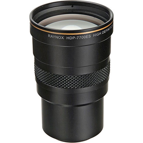 The Raynox HDP-7700ES 37mm HD 3.0x Super Telephoto Conversion Lens for HDV camcorders provides high powered telephoto magnification. The lens shade and included adapter rings give this lens even more versatility. The HDP-7700ES has a solid metal body, 5 element/3 group construction, high index optical glass, and all surfaces are fully coated.