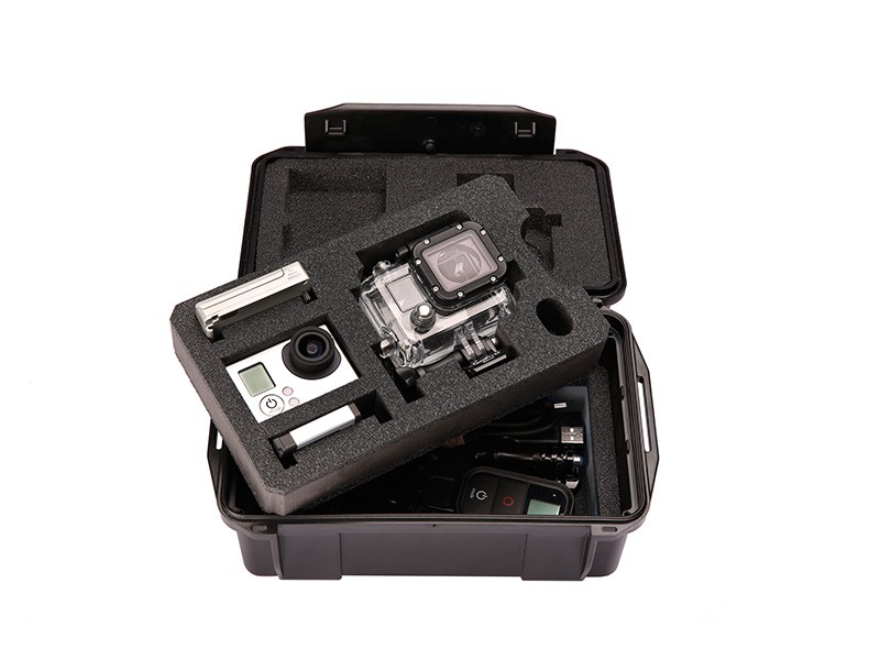 The POV20 waterproof case offers rugged protection for your GoPro camera and accessories. The custom cut foam stores contents in an organized upper and lower tray system. The Pressure Latch ensures easy opening after changes in altitude and the Silicone O-ring ensures a watertight seal.