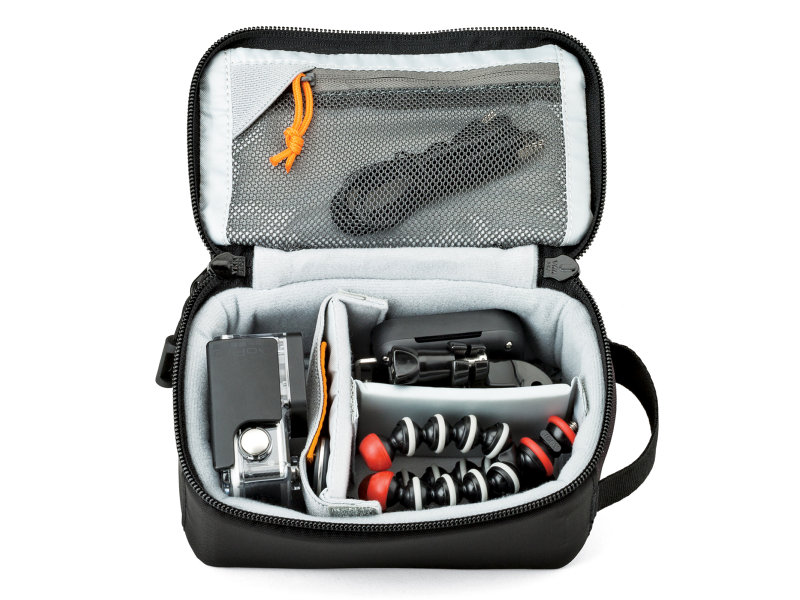 • Case designs are built with adjustable dividers and a wall of accessory straps to keep mounts, cables and batteries neat and secure.