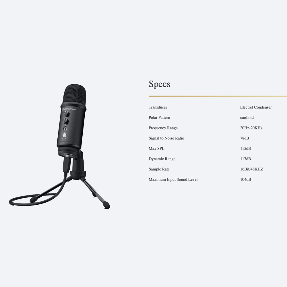 The easy-to-use TU1 microphone is a true plug-and-play solution, ready to use out of the box with no software needed. The high-quality, anti-interference wire ensures lossless signal transmission and the high sampling rate sound card provides super CD-level sound quality.