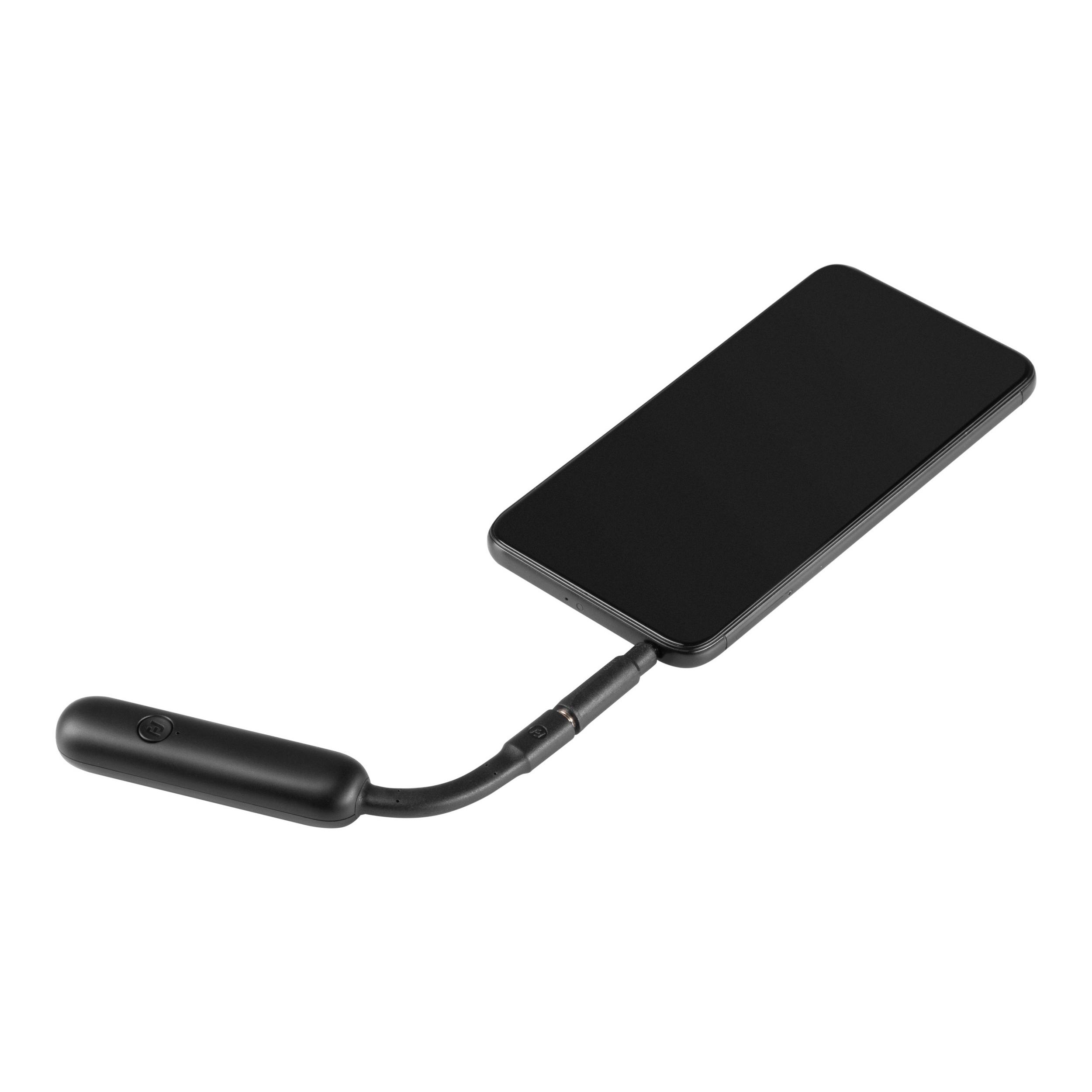 After the start, the recorder and the receiver will connect automatically, and the built-in batteries will allow you to record a few hours of interview or vlog. The set can be recharged using a standard smartphone charger or power bank.
