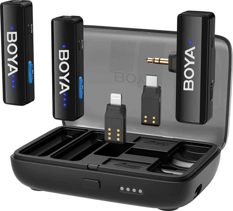 BOYALINK 2 is an upgraded, versatile wireless microphone that delivers pristine audio effortlessly. Featuring three interchangeable adapters on the receiver, it ensures full compatibility with cameras, mobile devices, and computers. Add 2-level noise cancellation and an upgraded range of up to 300 meters line-of-sight. BOYALINK 2 is the perfect wireless companion for live streaming, content creation, and street interviews.