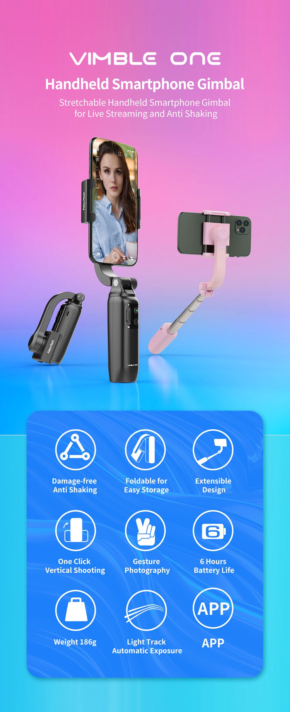 Vimble One is a one-axis smartphone gimbal that will make your movies look extremely professional and stable. It is probably the simplest and best gimbal for those who want to start their adventure with filming and vlogging with a smartphone.