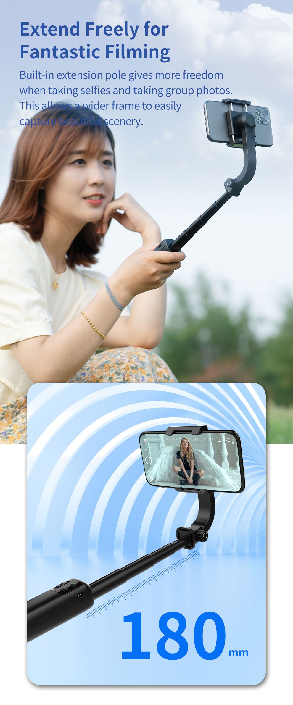 It’s so small, it can fit anywhere. Folded, it’s the size of a smartphone, so you can easily put it in your other pocket in your pants or in your stuffed backpack. The inconspicuous brushless motor will ensure stable and vibration-free shots.