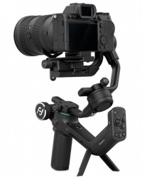 The FeiyuTech Scorp-C is a state-of-the-art gimbal designed for DSLR and mirrorless cameras with a maximum weight of 2.5 kg. Two handles allow comfortable and stable guidance of the camera in different positions. The device can be controlled with buttons and a built-in joystick or using a mobile app. The gimbal is compatible with follow focus systems. An ergonomic knob is placed on its housing to control motor movements or other parameters. Automation and special modes will allow you to realise complex shots and discover new layers of creativity. The built-in rechargeable battery will provide up to 13 hours of uninterrupted operation. To place the device on a flat surface, you can use the fold-out stand or the included tripod.