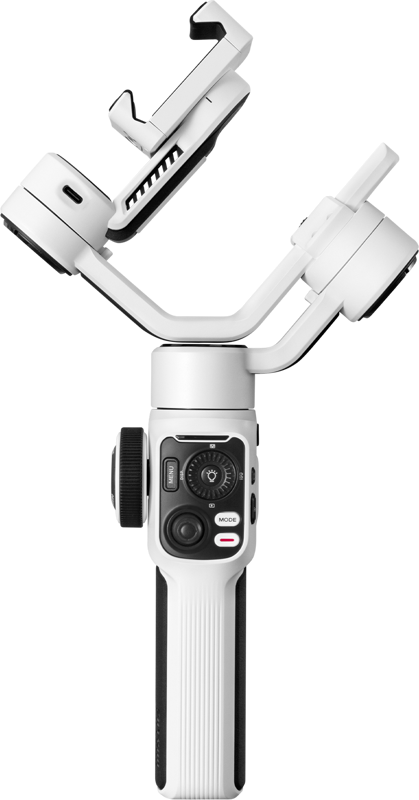 The gimbal features an intuitive control panel and wheel that allows easy adjustment of gimbals shooting modes including PF, L, F, POV and other parameters. Paired with the Zhiyun app ZY Cami it´s easy to adjust zoom and focus via the control wheel. Together with the ZY Cami app, the user can access creative settings such as Gesture Control which starts the recording when you make a special gesture, SmartFollow which follows the subject in picture and DollyZoom which adds a cinematic dimension to your videos.