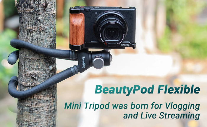 SmallRig BeautyPod 1.5K Flexible Mini Tripod BT-15 is a flexible tripod designed for mobile phones and lightweight cameras. It features flexible legs with adjustable angles and non-slip feet that suit any terrain for stable and secure shooting. The head can be 360º swiveled and 90º tilted to support both horizontal and vertical shooting; its baseplate comes with a quick-release two-way cold shoe that allows adjustment in the front and rear directions as needed. The tripod is made of quality durable aluminum alloy and nylon with fiber and weighing about 220g, holds up to 1.5kg, and fits easily into a shoulder bag or handbag, making it easy to carry around and use on-demand. The smartphone holder is compatible with phones from 60mm to 95mm wide, such as iPhone 12 mini, iPhone 12, iPhone 12 Pro, iPhone 12 Pro Max, Galaxy S20 5G, S20 Ultra 5G, S20+ 5G, Huawei P40, P40 Pro, etc. On its top, there is also a cold shoe for attaching a microphone, LED light, etc. Remove the smartphone holder to mount action cameras, card digital cameras, and lightweight mirrorless cameras of up to 1.5kg.