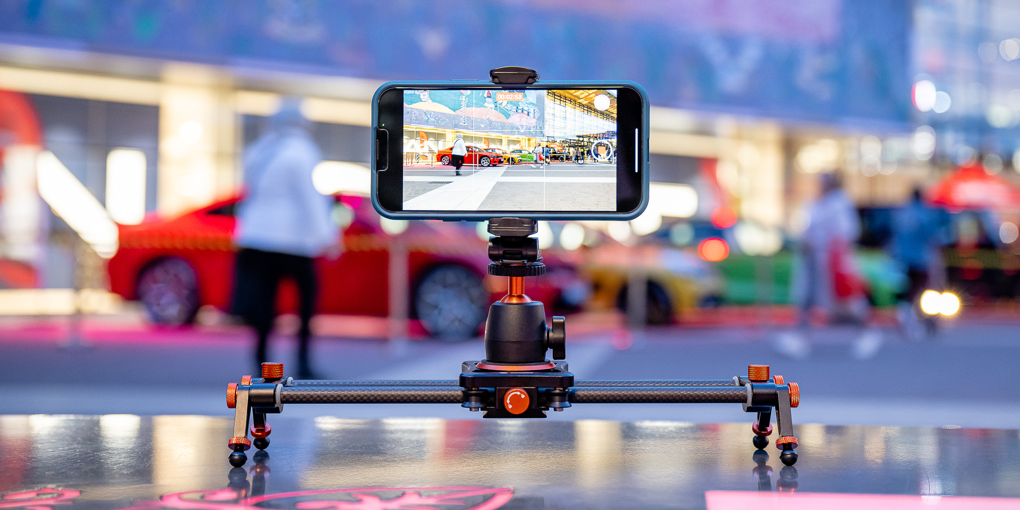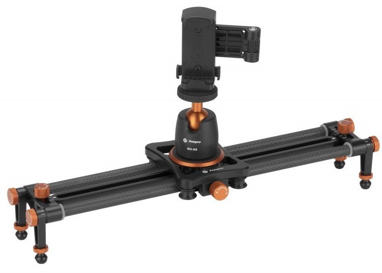 portable slider allowing to work with smartphones and cameras weighing up to 1.5 kg