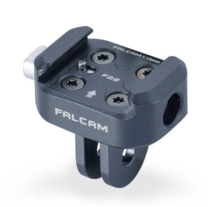 Use the Falcam F22 Double Ears Quick Release Base for Action Camera to connect the 3-point camera mount to a quick release plate.