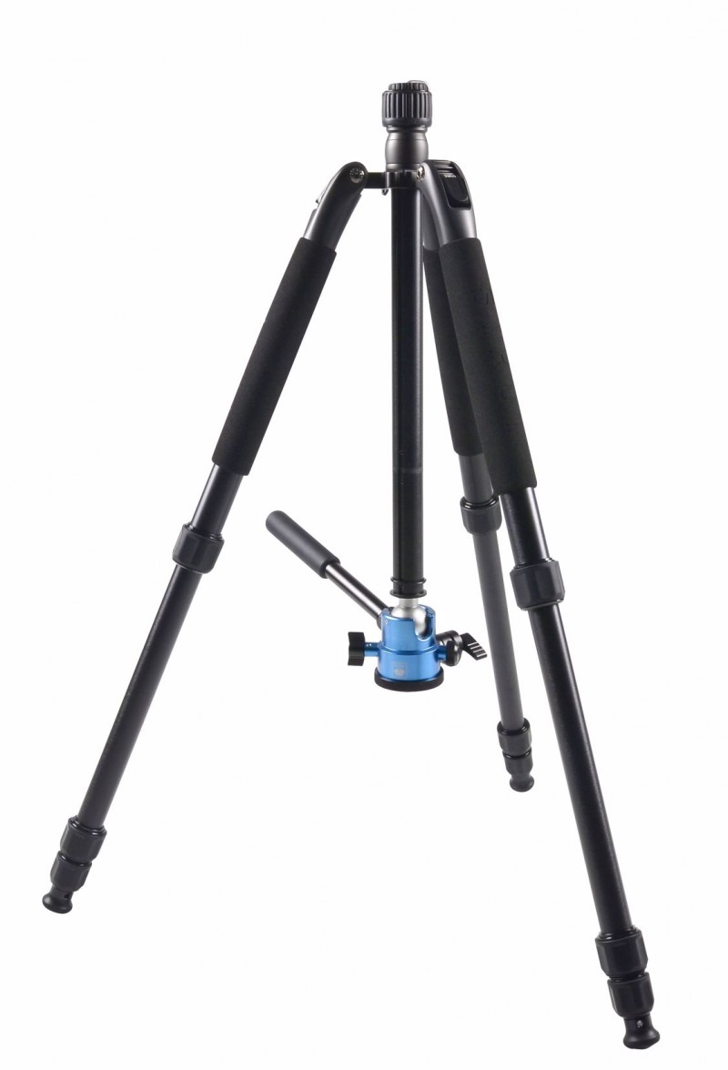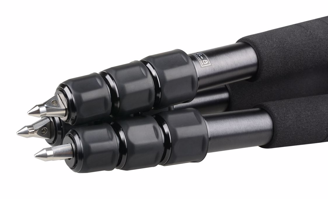 The rubber feet are removable and can be swapped out for optional spikes, and the tripod also features a 1/4″ accessory mount.