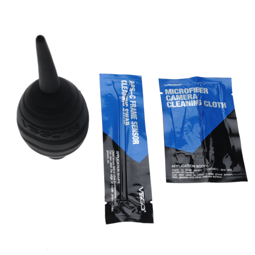 Proper maintenance can considerably extend the life of your digital camera. The VSGO Integrated Hurricane Air Blower Kit therefore has everything to thoroughly clean your DSLR equipped with APS-C sensor. You can safely clean the sensor of your camera with APS-C sensor cleaning swab 16mm. Additionally, with the bellows and microfiber cleaning cloth strip the camera body from dust and dirt and stains.