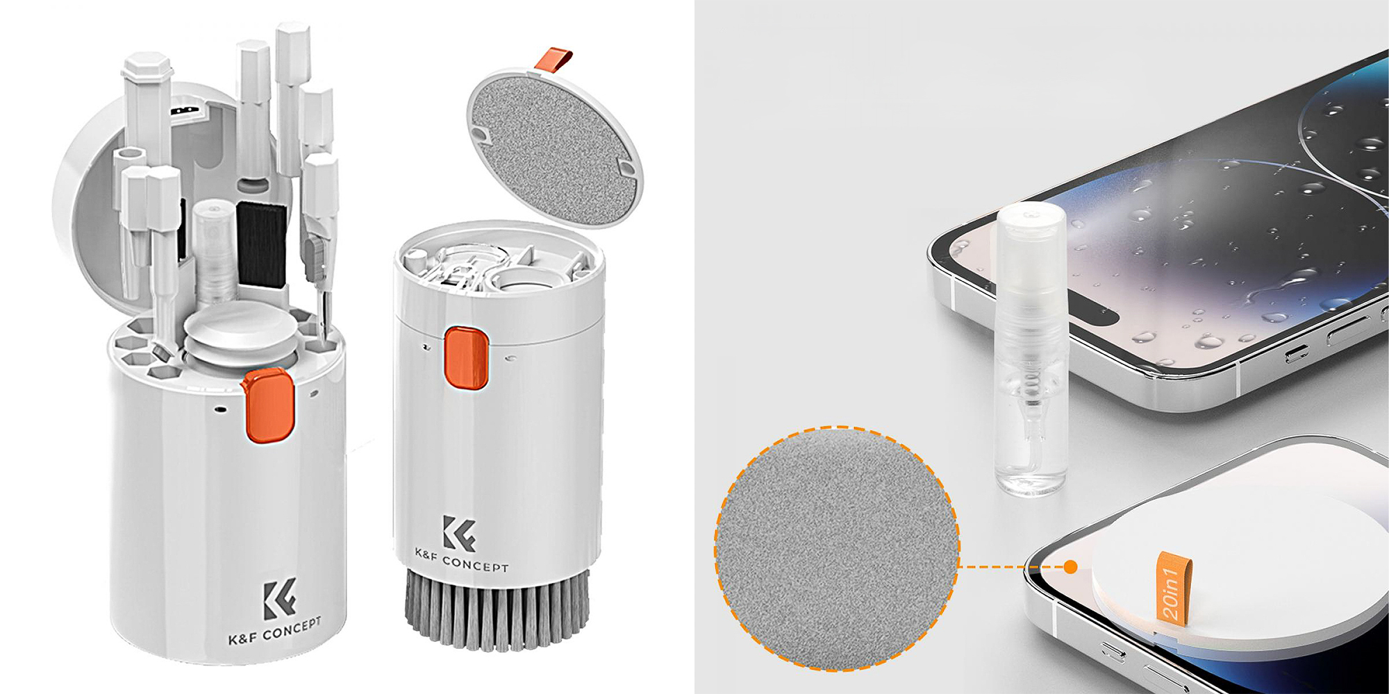 The K&F Concept 20-in1 electronics cleaning accessory set will effectively clean hundreds of different devices. It’s an economical and cost-effective choice, much better than picking up individual tools. With this set you save time and money by having everything you need in one handy organizer.
