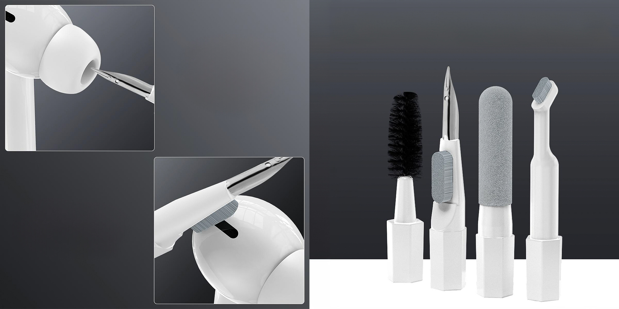 Slim tip with pointed tip (“nib”) – helpful for removing dirt from headphones, for example.