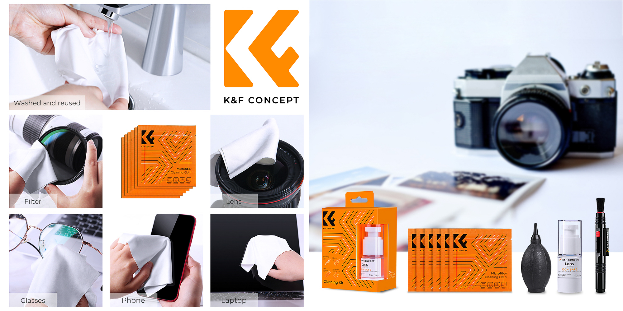 Choosing a delicate microfiber cloth is a guarantee of excellent cleanliness, but also a safe solution for your equipment. The special material, thanks to its properties, will not scratch the cleaned surfaces, which makes it ideal for both professionals and amateurs. In the K&F Concept Optics Cleaning Kit 4-in-1 you will find six vacuum-packed cloths, which ensures their freshness and sterility. This ensures that you always have a perfectly clean cloth on hand ready to use, no matter the situation.