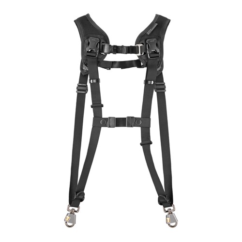 This patented double camera strap/harness is a work-horse for those long days of shooting with two cameras. Hang out with your 70-200 on your right side and your favorite closer lens on your left. Now you’re ready for business.