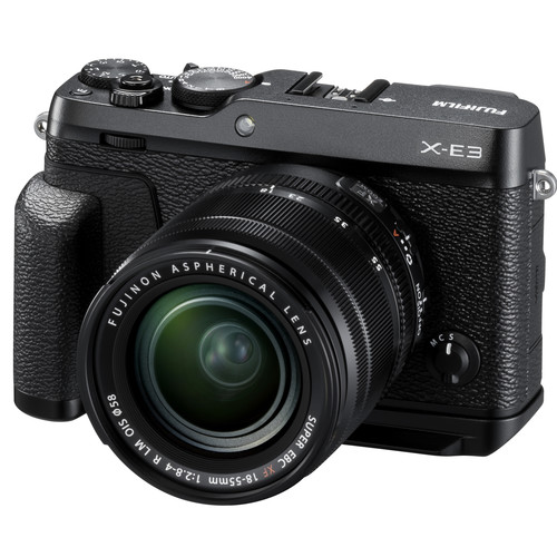 Dedicated to the Fujifilm X-E3 mirrorless camera, the MHG-XE3 Metal Hand Grip affords an optimized grip for easier handling and manipulation of the camera. It attaches to the base of the camera and retains access to the battery and memory card compartment. At the base of the grip, a 38mm-wide protrusion features a dovetail design that can act as a quick release plate with Arca-type compatible tripod mounts. Alternatively, a 1/4"-20 tripod mount has been positioned along the optical axis of the camera to benefit the creation of panning shots.