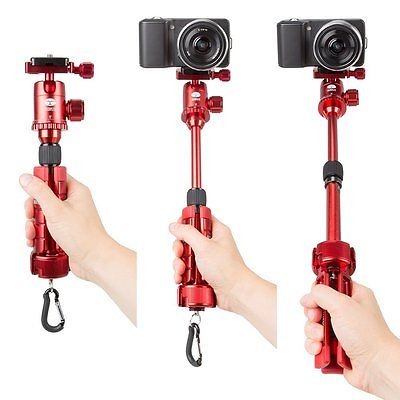 The legs fold up for storage and provide an excellent grip for shooting photos or videos.