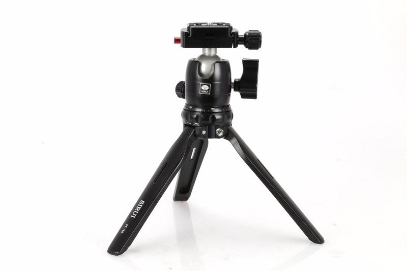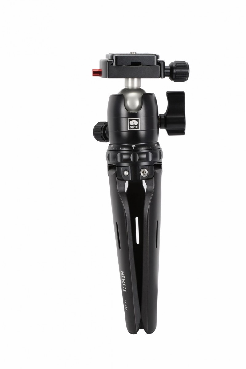 The small Sirui 3T-15 table top tripod is extremely lightweight and with a lenght of only 22 cm, it fits in any bag. The 3T-15 performs equally well whether used hand-held for action cams or as a traditional mini tripod with a system camera mounted.