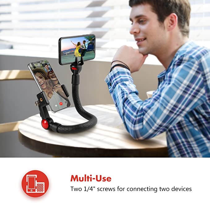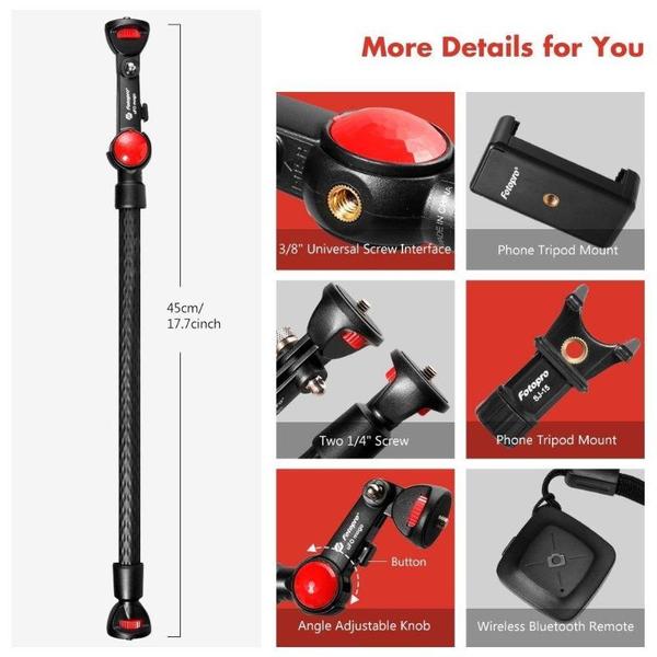 The arm is equipped with a tripod mount two male 1/4 ” compatible with most standard photo-video accessories.