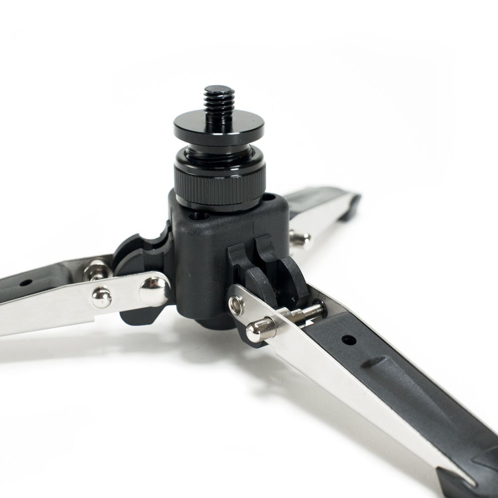 Genesis Base S-1 is a monopod support stand. It is made of high-quality plastics and metals. It transforms a standard photo monopod into a monopod that can be used for filming purposes. It allows for capturing stable panoramic shots. Three rubber spikes ensure excellent grip on slippery grounds. S-1 Stand works in two modes: spread-out mode (3 supporting points) and standard mode (1 supporting point). It perfectly works with Genesis MPC-3 monopod, but it is also compatible with other monopods fitted with a 3/8” thread.