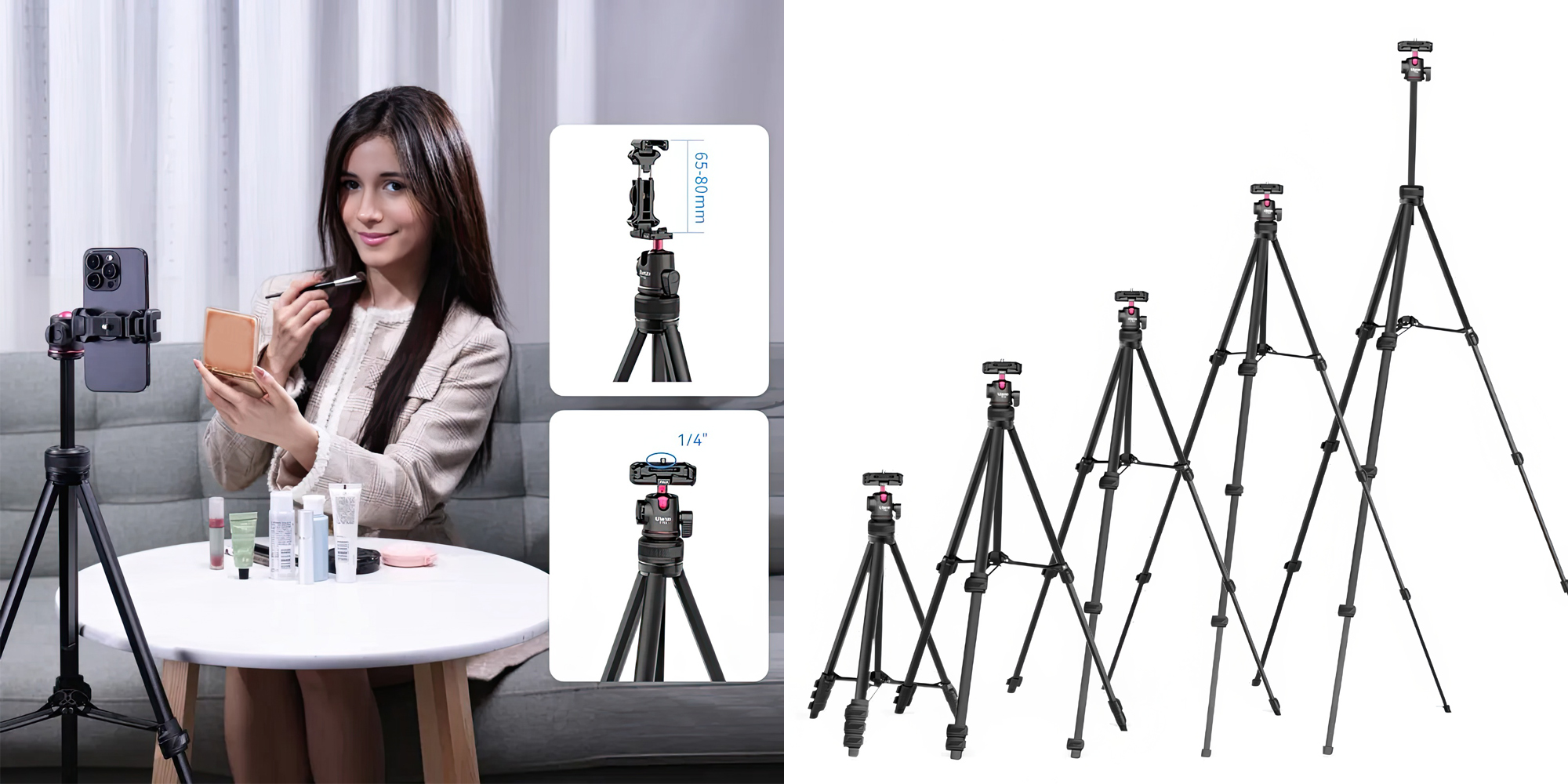 Despite its light weight (598 g) and small folded size (only 47 cm), the Ulanzi TT51 can support equipment weighing up to 1.3 kg. This allows you to use most compact cameras and mirrorless cameras without any problems and still be mobile. It strikes the perfect balance between sturdy support and easy portability – ideal for photographers and videographers who are constantly on the move.