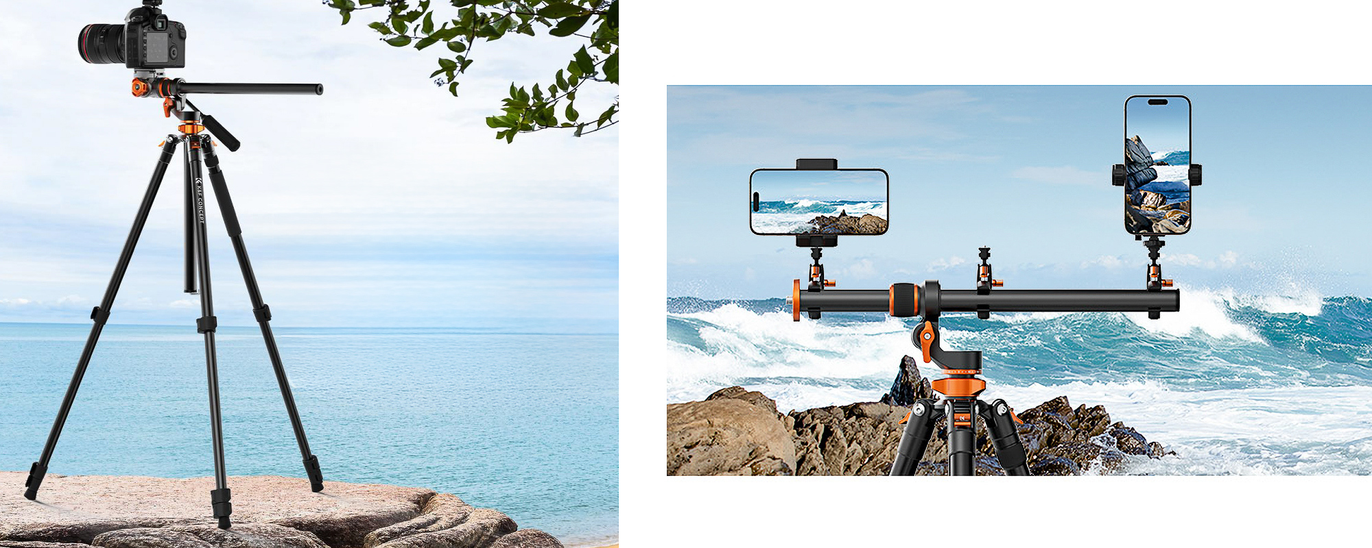 When you choose the K&F Concept T254A7 video tripod with FH-03 head, you gain even more working freedom. It’s the perfect solution when your film projects require instant response. Simply extend the central column and connect it to one of the legs, and in seconds the device turns into a handy monopod with an impressive length of 240 cm. The unique setup will allow you to get stable frames wherever there is no room to spread out a traditional tripod.