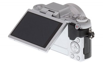 On the left is the Fn (function) button, which can also be used as a shutter release button when using the camera in "Selfie" mode. The camera is more compact than the GF6, and weighs 266g with battery and memory card.