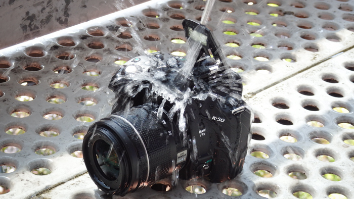 All of the K-50's technologies are housed within a polycarbonate-covered camera body that is supported by a stainless steel chassis. This body design is fully weather-sealed and protects the camera from moisture and dust as well as extreme temperatures from 14-104°. Additionally, the design of the camera allows the use of either the standard lithium-ion battery pack or four AA batteries as its power source when used in conjunction with the optional D-BH109 AA Battery Holder.