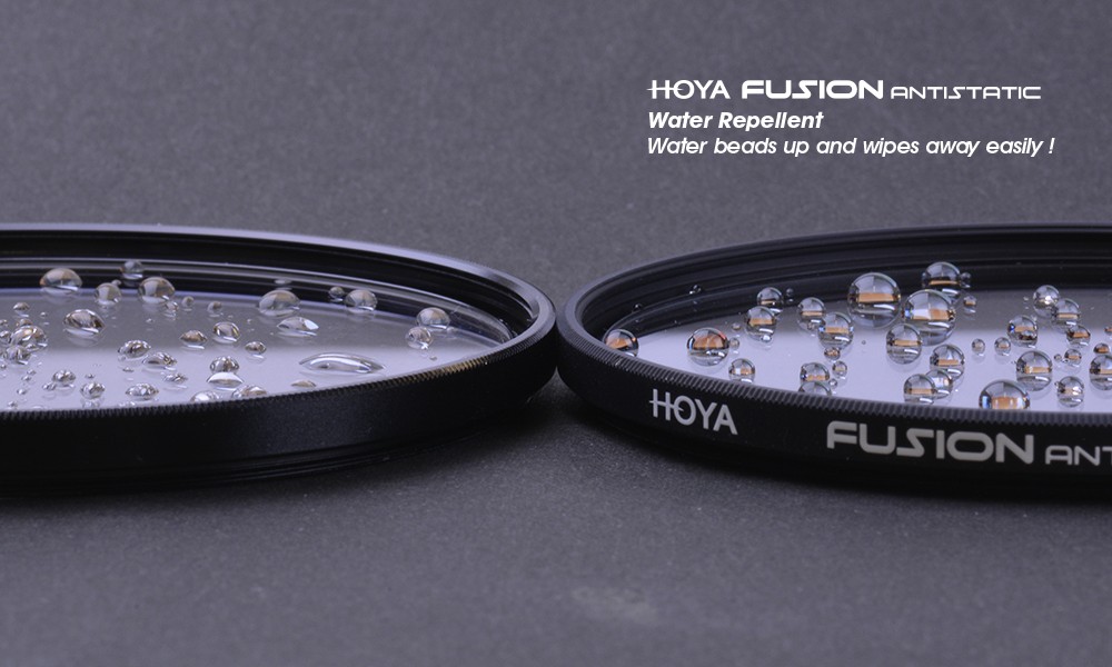 HOYA engineers have developed a new ANTISTATIC coating that acts like a force field around the filter to repel dust. Perfect for environments where dust is common, these filters require less frequent cleaning and maintenance than traditional filters. Additionally, the hardened, antistatic top-layer is water repellent and stain resistant, and cleans easily when smudges or fingerprints are introduced to the surface.