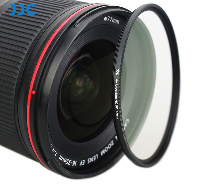 JJC A+ F-MCUV Series Ultra Slim Multi-Coated UV Filter is effective to absorb ultraviolet light. The filter is designed with 6 layers of coating on each surface to reduce internal ghosting and reflections. The average light transmission is not less than 99.5%, which provides you with high color fidelity. The filter is constructed from Japanese optical glass and a precision milled aluminum frame. Hardness of the filter’s glass is up to 9HD, which provides additional protection in case of drops or situations where scratching could occur. Moreover, this filter features an incredibly slim design that the glass measures just 0.03" (0.7mm) thick, and the frame measures 0.12” (3mm) thick, helping to minimize the likelihood of vignetting. The aluminum frame has a matte finish on the surface and is corrosion-resistant. It is complied with the ROHS standard that is limited by European Union. The front of the frame is designed with thread for attaching lens cap or other accessories. The filter also helps to reduce dust and moisture from reaching your lens element. The filter is useful as a general protective filter to leave on lenses at all times.