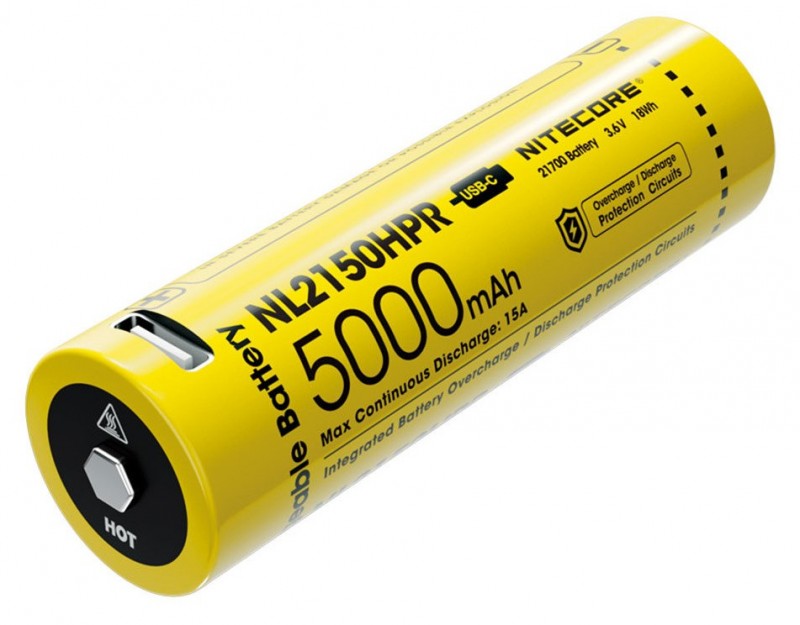 The Nitecore NL2150HPR battery is a high performance cell with a maximum capacity of 5000mAh, a continuous discharge current of 15A and a USB-C charging port to eliminate the need for an external charger. Please note that no charging cable is included.