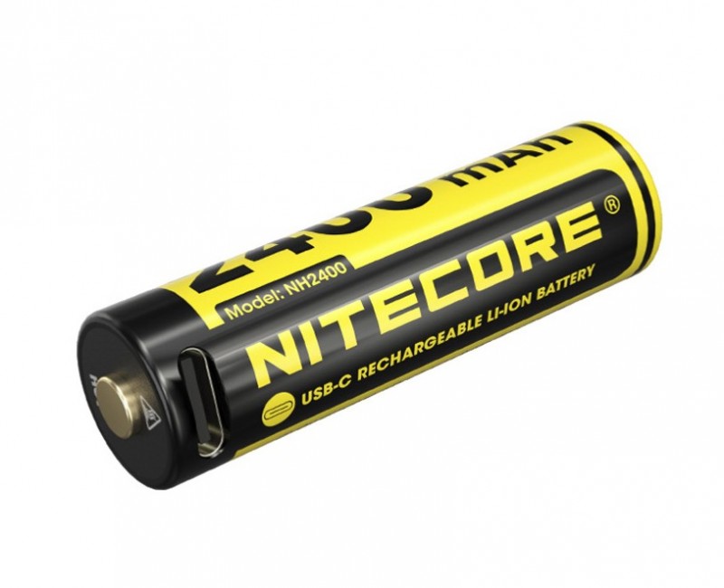 The Nitecore NH2400 USB-C Rechargeable 1.5V Li-ion AA Battery is a battery with a capacity of 2400 mAh and a constant voltage of 1.5 volts. Thanks to its built-in USB-C port, you can charge it directly without a separate charger.