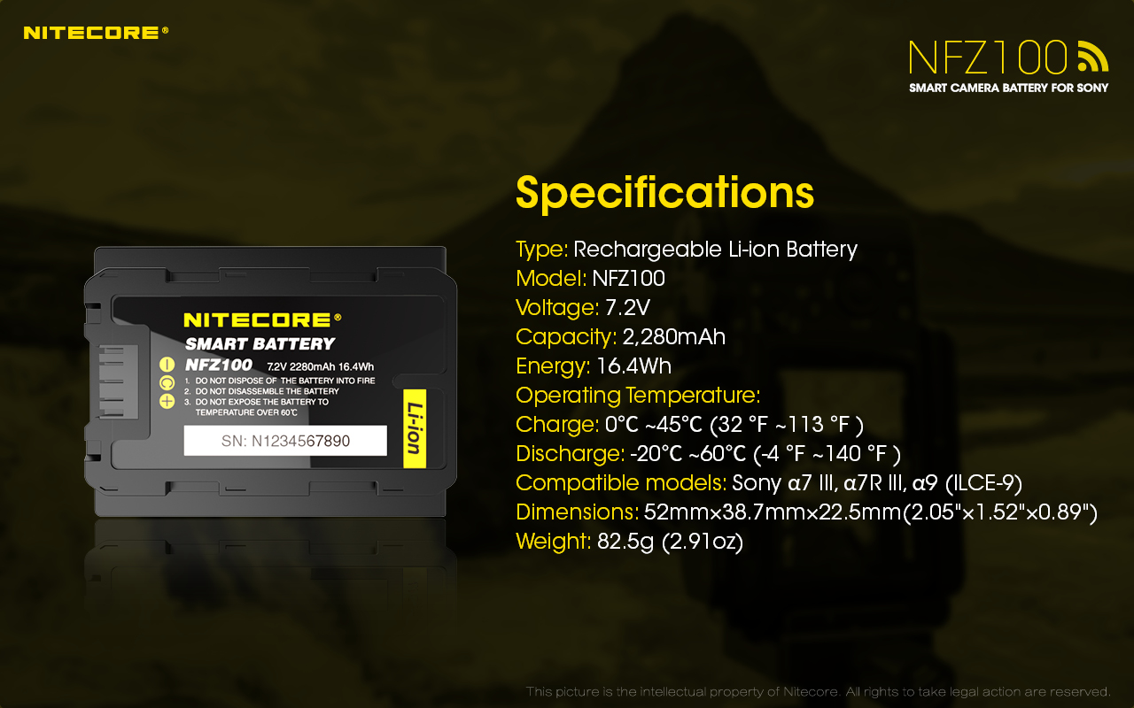 The Sony NFZ100 Smart Battery from Nitecore is the first intelligent battery that you can manage with your smartphone via the NNERGY App.