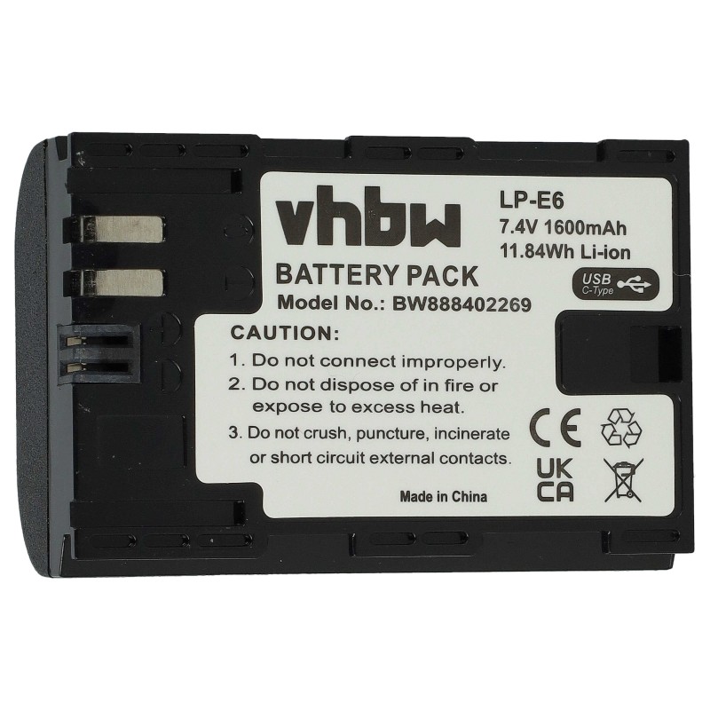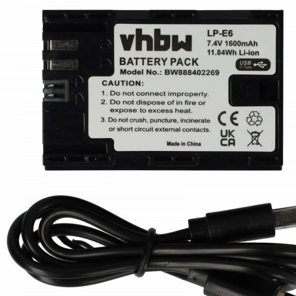 - Kross: VHBW LP-E6 Battery ( LP-E6 , LP-R6N , LP-E6NH ) TYPE-C 1600 MAH for Canon Camera